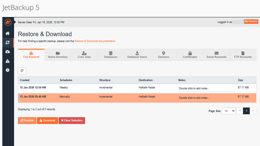 JetBackup ile Hosting Yönetimi: Yedeklerinizi Profesyonelce Yönetin